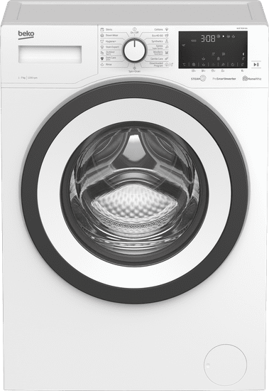 : BekoSpredu plnená automatická práčka v energetickej triede B s náplňou 9 kg bielizne pri praní a 14 programami. Beko WTE9636WX0A disponuje technológiou ovládania práčky pomocou inteligentného telefónu cez aplikáciu HomeWhiz a funkciou SteamCure pre využitie pary.