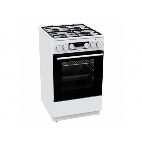 Kombinovaný sporák Mora K 5652 CW je voľne stojaci v bielom prevedení. Ovládanie horákou je pomocou otočných gombíkov, ktoré sú umiestnené v prednej časti s digitálnym dotykovým časovým spínačom s hodinkami. Integrované zapaľovanie horákov je riešené priamo v samotnom ovládacom gombíku plynu, stačí iba jednou rukou otočiť požadovaným gombíkom automaticky zapáli plynový horák. Horáky sú kryté dvojdielnou smaltovanou mriežkou STABIL PLUS, ktorá zaisťuje bezpečný posun riadu vo všetkých smeroch. Sporák je vybavený aj praktickým výklopným úložným priestorom v spodnej časti, kde si môžete uskladňovať plechy alebo iný kuchynský riad.