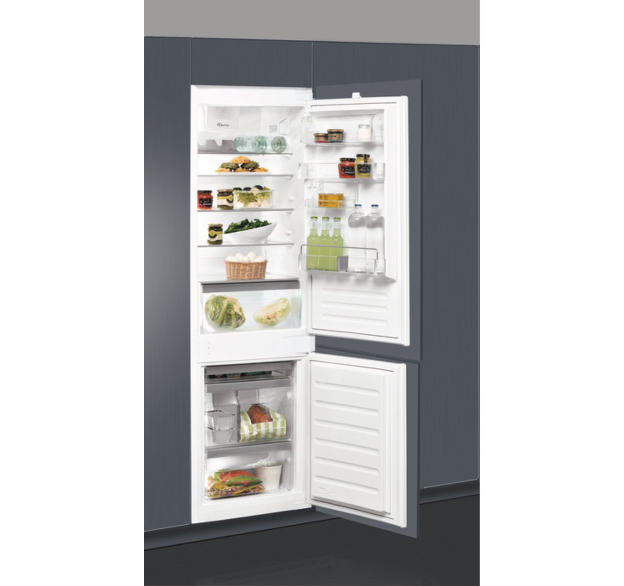 : WhirlpoolVstavaná kombinovaná chladnička ART 66112 so samostatnou mrazničkou dole v energetickej triede E s elektronickým ovládaním. technológia 6. ZMYSEL,LED osvetlenie, LessFrost systém - redukovaná námraza na vnútorných stenách mrazničky. Už žiadne mraziace rošty, viac vnútorného priestoru v mrazničke!, odolnosť pri výpadku prúdu: 19 h, praktické prestaviteľné sklenené poličky a priečinky vo dverách chladničky, veľká zásuvka na ovocie a zeleninu., vnútorné zásuvky v mrazničke pre prehľadné skladovanie potravín, jedna maxi zásuvka, kapacita mrazenia: 3,5 kg/24 h, využiteľný objem chlad./mraz.: 194/79 l, hlučnosť 35 dB, Zameniteľné otváranie dverí, inštalácia do skrine, spojenie nábytkových dverí posuvnými koľajničkami.